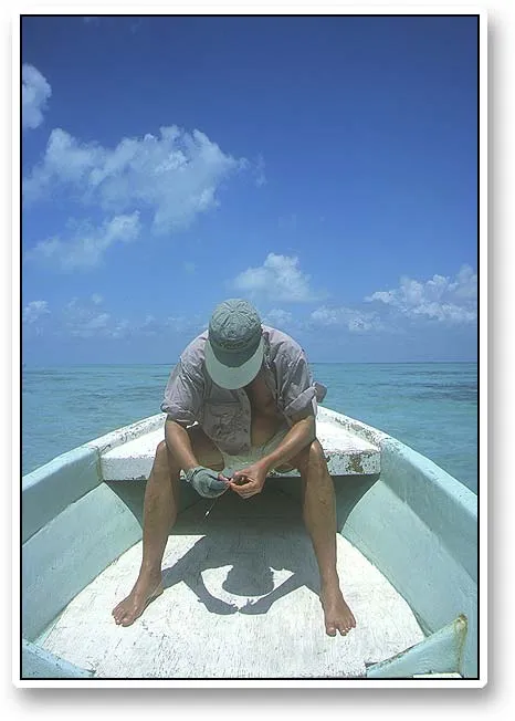 Kim Rasmussen changing the tarpon fly during a few hectic minutes with tarpon all around the beat. None would take, and in one instance we managed to cast three different flies to the same school of fish.