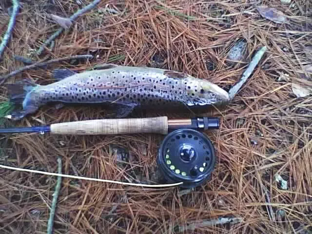 A solid brown trout took the caddis in the rapids, sat for this photo opp, then sped away after a minute of reviving in the river.
