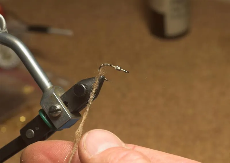 Take the thread to the rear of the hook shank and start dubbing it... but sparsely!