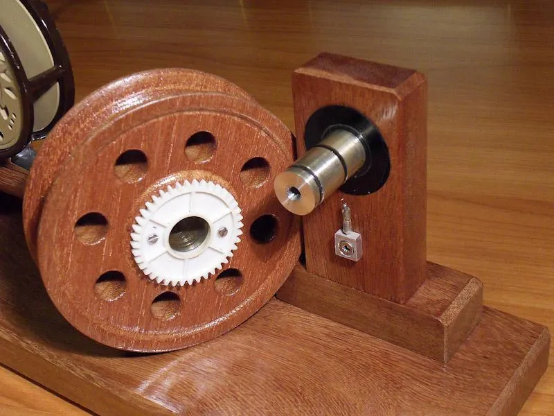 Under the shaft you see the little pin that will touch the gearwheel to make the rattle complete